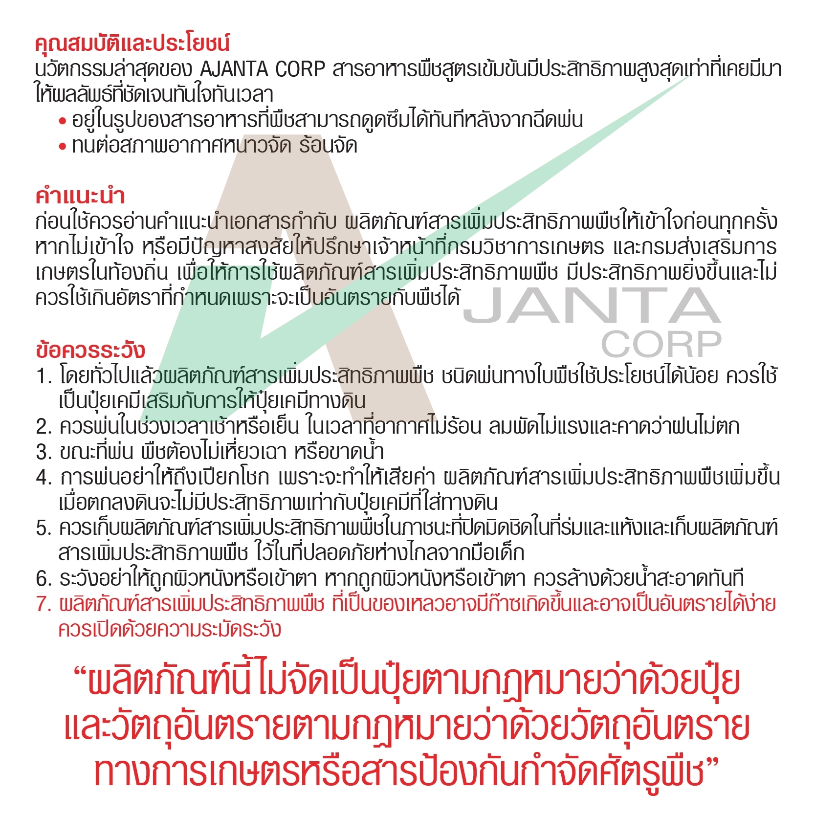 ⚠️สินค้าทั้งหมดสามารถฉีดพ่นได้ทั่วต้น เหมือนฉีดสารป้องกัน-กำจัด หนอน แมลง, โรคพืช, ปุ๋ยเกล็ด ฮอร์โมน หรืออาหารเสริมทั่วไป สามารถผสมฉีดพ่นร่วมกับ สารป้องกัน-กำจัด หนอน แมลง โรคพืช ปุ๋ยเกล็ด ฮอร์โมน และอาหารเสริม โดยไม่ต้องเสียเวลาฉีดพ่นหลายรอบ⚠️